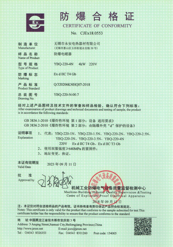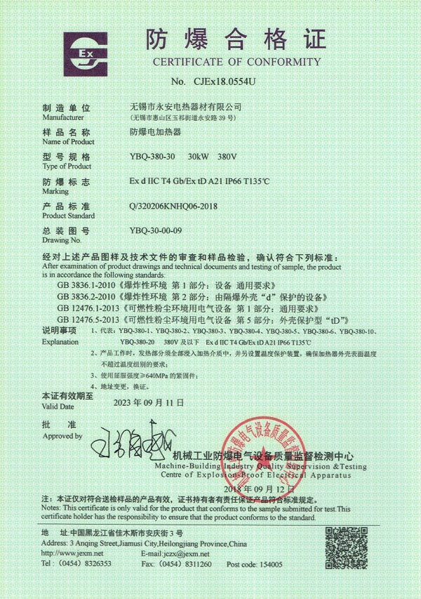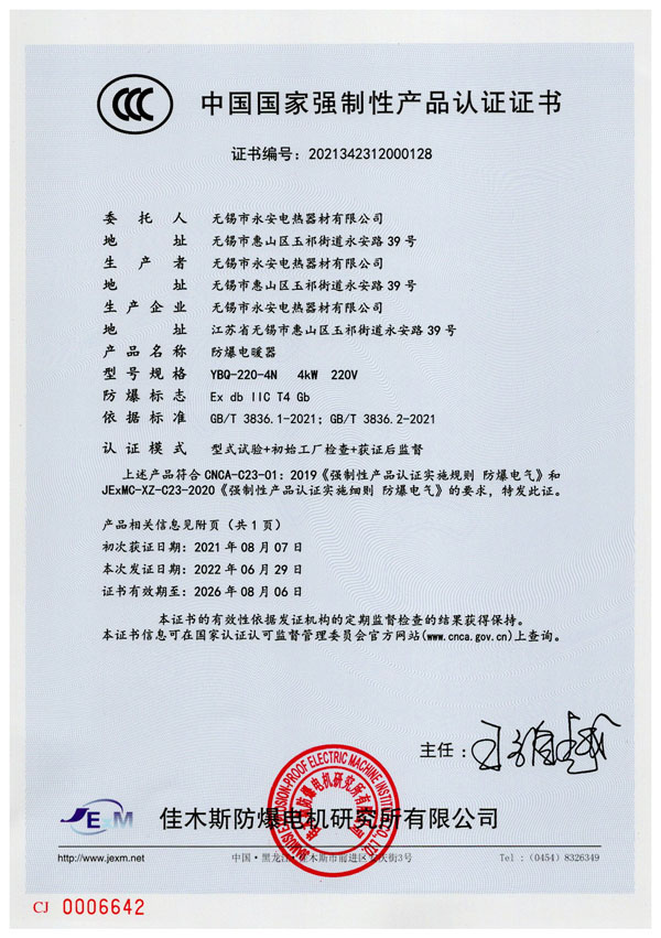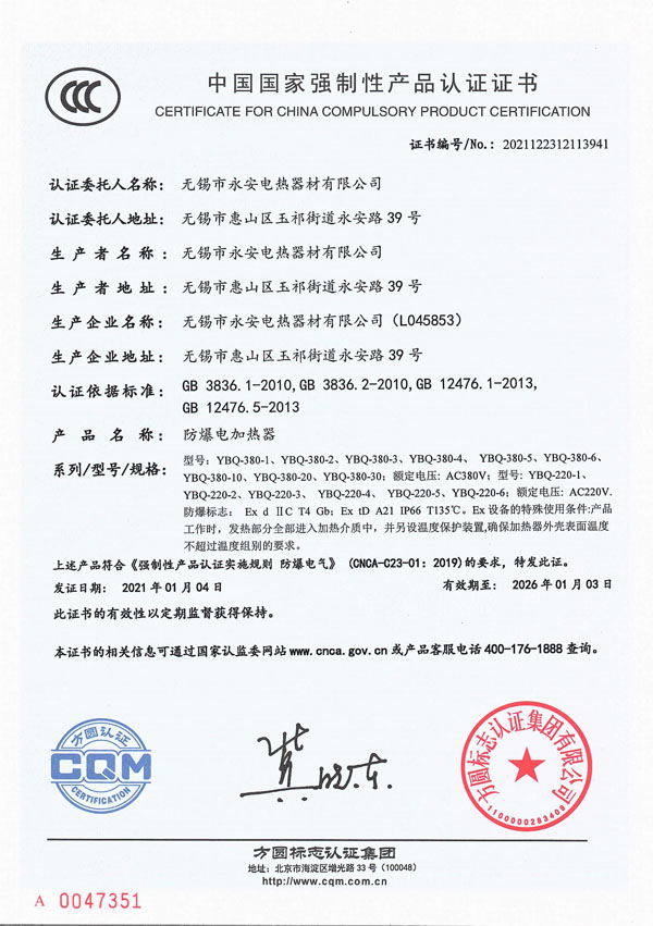 CCC證書-箱體防爆電加熱器