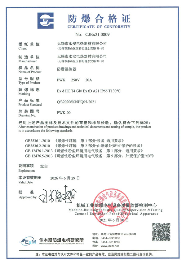 防爆證-防爆溫控器