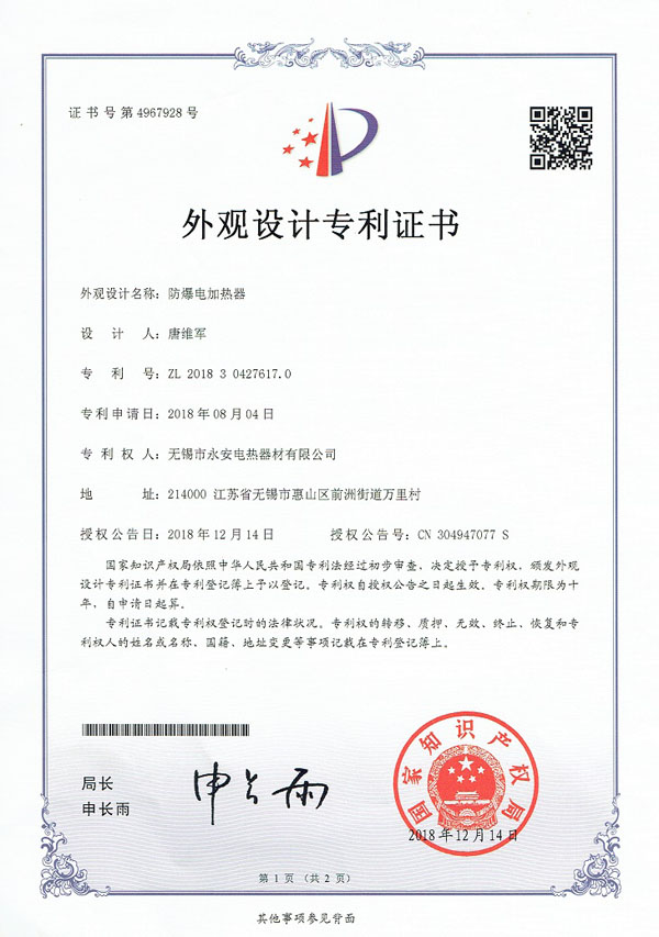 專利外觀-防爆電加熱器